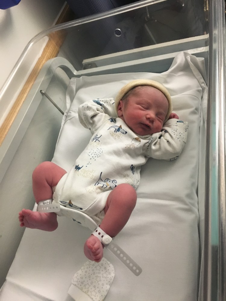 During labor Roman’s heart rate started dropping so our midwife and other doctors acted fast and hurried us into theatre where Roman was delivered by a cesarean.