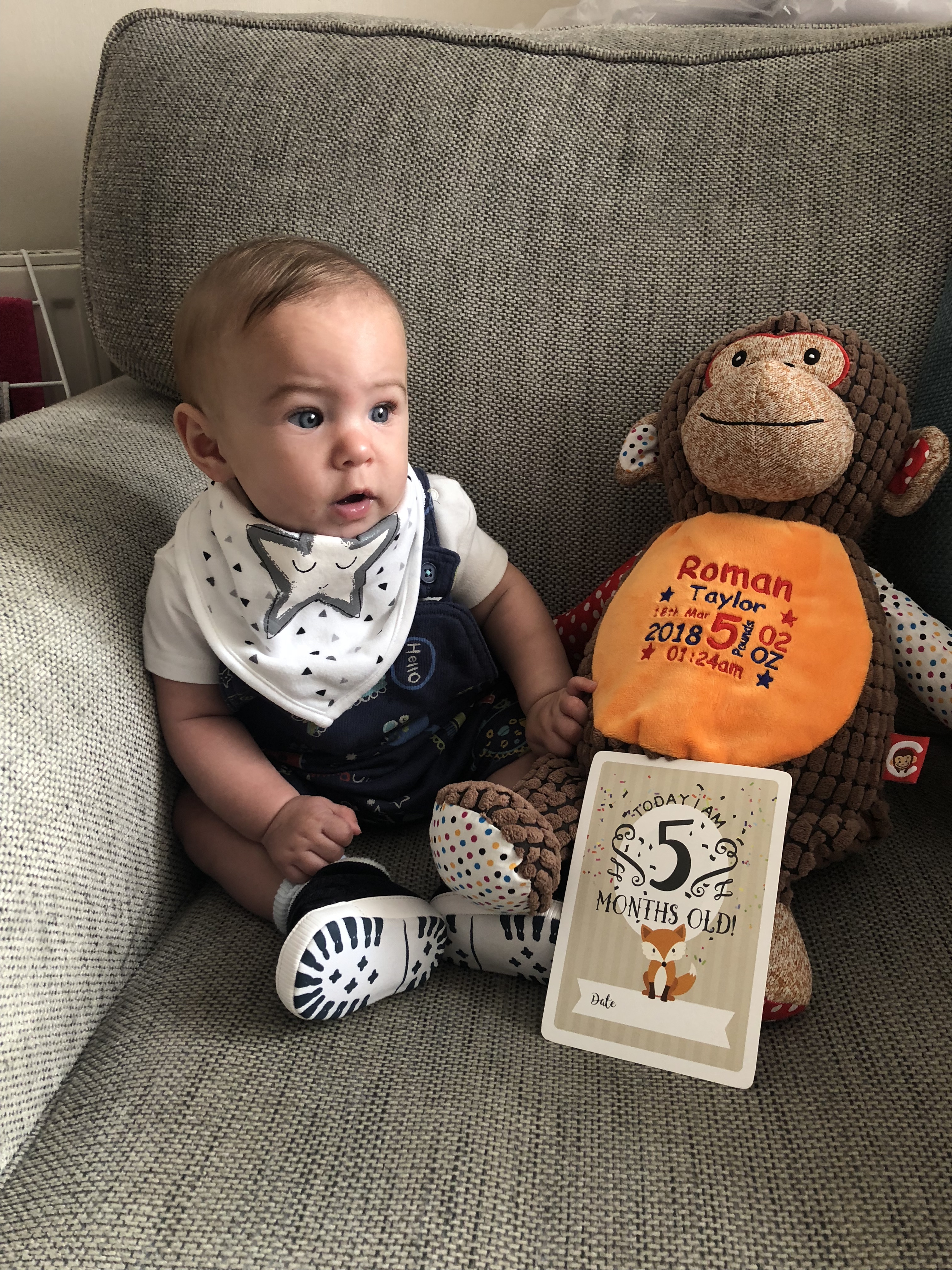 Roman was also beginning to laugh which is just music to any parent’s ears, and luckily enough for us, you don’t have to be a comedian to bring laughter to a child. Just dance around like an idiot or hide behind your hands and pop out with a “boo” usually does the trick. No judgement here.